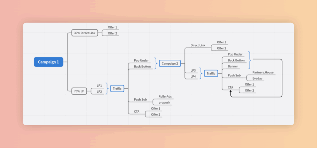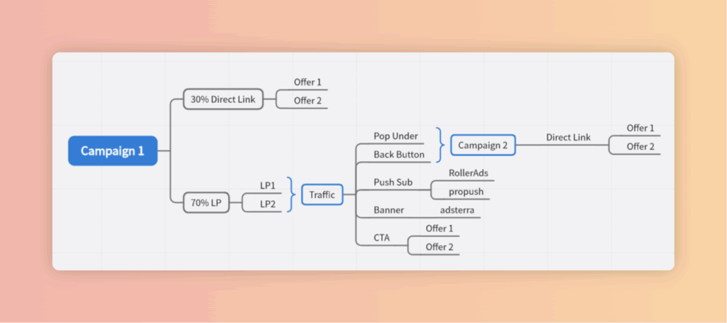Popunder 和 Back Button 引导的流量可以跳转到另一个 Campaign,挂新的直链或 LP,这个新的 LP 又可以继续加订阅、Popunder 和 Back Button,相当于“套娃式”二次变现。引导Popunder 和 Back Button 的流量跳转到另一个 Campaign 2,如何方便的追踪其统计数据,可以看下这篇文章: